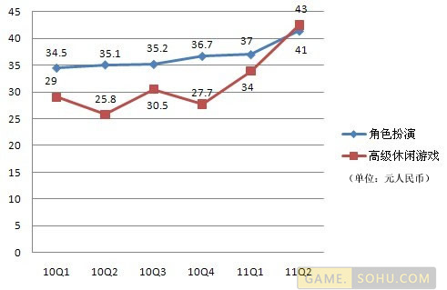 MMORPG每个活跃付费用户平均每月贡献的收入(ARPU)季度增长11.1%至41.1元人民币。
