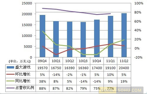 图解:盛大游戏Q2营收2.04亿美元 同比增19%