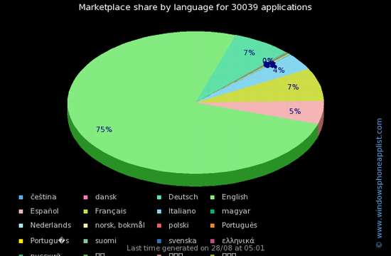 此外,在整个应用程序总数中,约有75%的应用为英语语言版本应用。