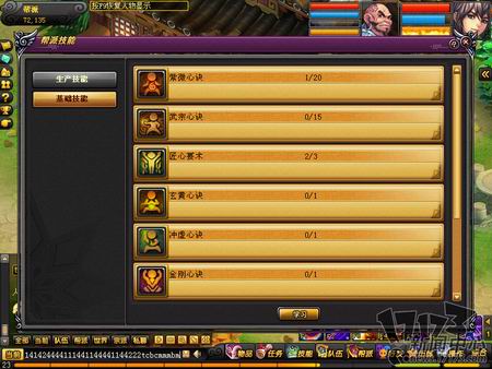 游戏中的技能分为战斗技能、生活技能、帮派技能3部分。