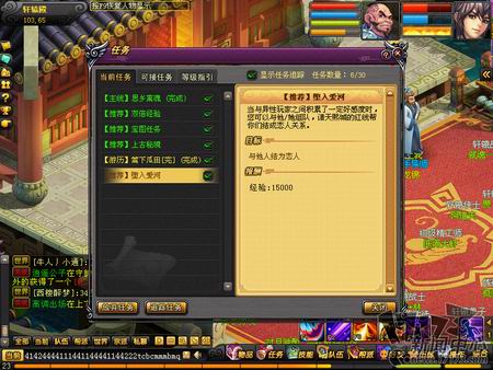游戏中的拥有主线、修行、跑环、帮派等任务,任务延续了传统的接任务、杀怪、获取任务物品、找人的任务模式,进入游戏后,就是不断的任务,前期靠任务升级是一种较为快捷的方式。