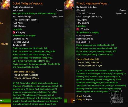 北京时间今天早晨在完成了魔兽世界欧服的更新之后,俄罗斯噬灵者服务器部落方Exorsus公会的地精盗贼伊波斯(音译,俄语名Имбос)率先完成了4.3“暮光审判”中加入的传说级匕首龙父之牙,成为全球首个拥有这对橙匕的幸运儿。由于困难模式并不会影响到橙匕的完成速度,相信接下来的两周内会有大量25人团完成该匕首。Exorsus的公会主页上同样放出了一张橙匕的效果图,一起来看看吧: