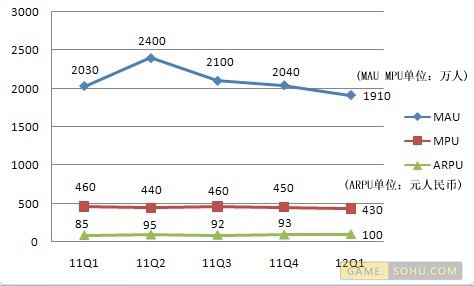 平均月度付费用户(MPU)为430万,上季度为450万。MAU和MPU的季度下降主要是由于2012年1月份由新年和春节带来的不利的季节性因素所致。