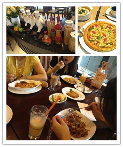 中餐时间,几位大银一起带我们去楼下的传奇广场吃中餐。因为下午要参加封测,中餐要以速度为主,所以我们选择了“意大利调情”的必胜客。