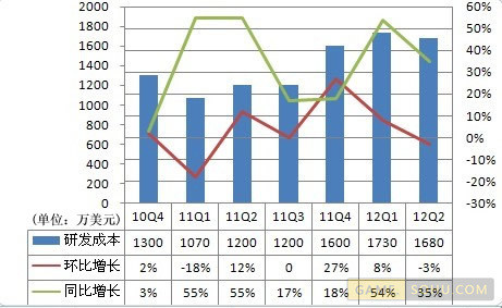 Q2畅游销售及市场推广费用为1,450万美元,环比增长48%,同比增长30%。销售及市场推广费用环比和同比增长主要是由于公司在2012年第二季度发布了新游戏和资料片,带来宣传费用的增长。