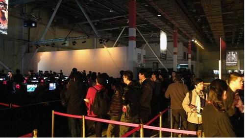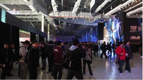 8点之后,玩家们鱼贯入场,硕大的会场瞬间人满为患,不要看美女看花了眼睛啊!我看到星际争霸的Cosplay美女正在准备服装,想必一会儿会有机枪太空服的靓丽女兵出场了!在美女出场前,玩家们的目光都聚焦在华硕ROG玩家国度提供的游戏试玩区。