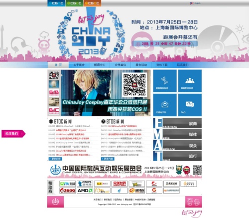 第十一届ChinaJoy将于2013年7月25日于上海新国际博览中心举办。在2013年新一年到来的同时,为给所有关注ChinaJoy的玩家朋友一个惊喜,第十一届ChinaJoy官网目前已完成全新改版,向公众开放。