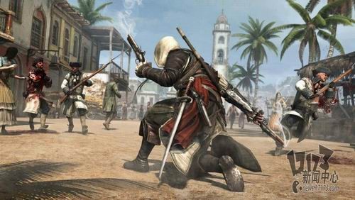 育碧旗下著名动作游戏刺客信条系列最新作《刺客信条4:黑色旗帜》(Assassin's Creed IV: Black Flag)今天早些时候曝光了5张截图,截图展示了游戏中的一些战斗场面和丰富的场景,游戏背景设定在1715年的加勒比沿海,主角是三代主角的祖父爱德华·肯威。本作预计将在今年10月29日正式发售,届时将同步登陆PC、PS3、XBOX 360和WiiU四大平台。