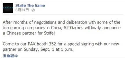 《超神英雄》开发商美国S2 Gmaes公司于前段时间曝光了旗下全新研发的MOBA类新作《冲突》(暂译,原名:Strife)。近日官方在facebook上公布了一段信息,据说已和一家中国运营商达成合作,将于9月1日在西雅图PAX游戏展上正式签署。最终花落谁家,17173将会在第一时间报道给各位玩家。