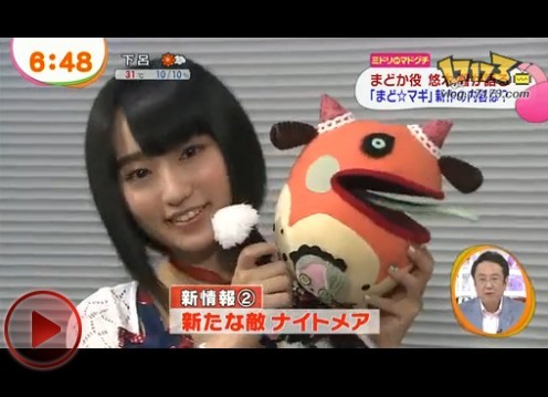 今早富士电视台的早间情报番组《早安TV》独占播出了剧场版《魔法少女小圆 新篇 叛逆的物语》的特别节目,小圆的声优悠木碧登场并介绍了一些新情报,剧场版的最新宣传影像也已在节目中播出,由ClariS演唱的主题歌《カラフル》的一部分也可以在影像中听到。(视频最后,悠木碧还说:结局将让人十分意外!看起来新作将会有全新的展开。大家请期待10月26日的公映吧!)