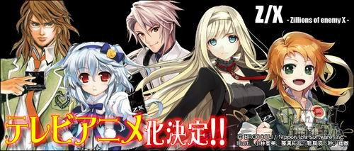 卡牌游戏《Z/X-Zillions of enemy X-》确认将要TV动画化。《Z/X》是由Broccoli与日本一共同制作的卡片游戏,是一款在3X3的方格上进行的1对1对战的卡片对战游戏,人设上邀请到了包括狗神煌、小林智美、藤真拓哉、碧风羽在内的诸多知名画师。本作的漫画版也已于月刊「V Jump」2012年年11月号上开始连载。