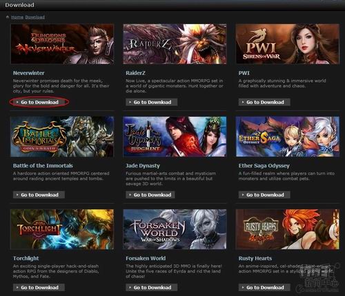 因为完美将所有游戏都整合到一个游戏平台Arc上了,所以在这个界面点击任何一个Go to Download按钮都可以,都会把你导向Arc游戏平台的下载页面,这是下载Arc客户端并按提示安装。