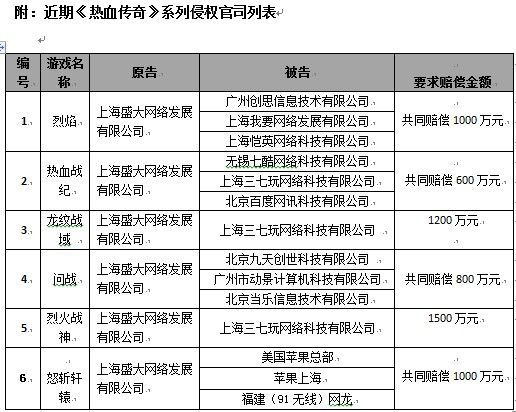 附:近期《热血传奇》系列侵权官司列表