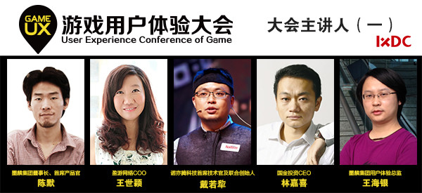 我们先来做一下预告,来看都有哪些顶尖的主讲人来做精彩的演讲吧。这期的5名主角是国内知名游戏集团墨麟集团董事长、首席产品官陈默,盈游网络COO王世颖,也有来自墨麟集团用户体验总监王海银,及著名金牌投资人国金投资CEO林嘉喜,诺亦腾科技有限公司首席技术官戴若犂。相信他们可以为我们全方面解读游戏用户体验。还有更多的精彩主讲人,我们共同期待!