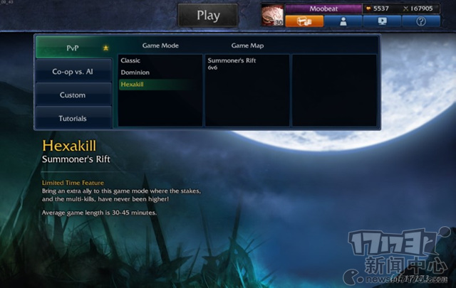 今日测试服中已可进行6v6模式游戏,地图为召唤师峡谷。玩家们可以再“penta kill(五杀)”之后,又有机会完成“hexa kill(六杀)”,不过难度似乎更高了吧。