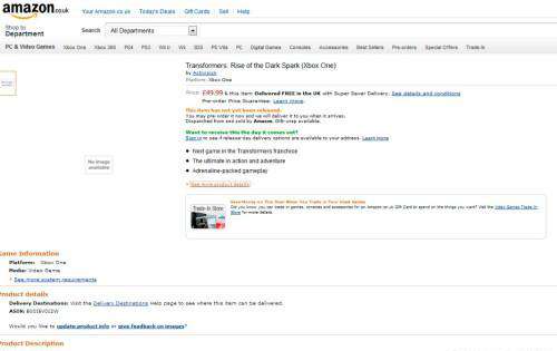 亚马逊商品描述:这是一部惊艳的次世代《变形金刚》系列的续作,无论对于老玩家还是新手,《变形金刚:暗焰崛起》都将会是一款令人激动的动作游戏。