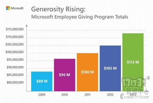 微软员工2013年为非盈利组织捐献1.13亿美元