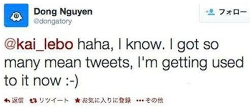 这消息若说是什么内部人员透露之类的,倒还没什么困惑,关键是这消息居然是作者自己声明的!作者Dong Nguyen在自己的Twitter上说:“我们打算升级现有的《Flappy Bird》,并以《Flappy Bird 2》的名称重新登录App Store,并且为了让新版顺利重返苹果商店,目前游戏的制作团队正在与苹果公司方面积极的联系中”。这种自爆的节奏由不得人不信了。