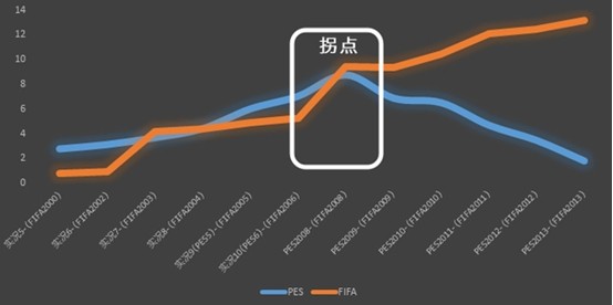足球游戏年年推陈出新,每逢四年便是一个增长高峰,但不论怎么交替,足球游戏始终是网络游戏占主导地位的中国市场的中“非主流”。Konami和EA长期以来专注在主机平台上角力,上演你争我抢的商战大戏,尽管上半个回合,Konami的《实况足球》系列获得领先优势,但似乎任何行业都必须遵循盛极必衰的规律,在PES6之后,《实况足球》被EA FIFA反超,不断求新思变的那一方才是最终的胜利者,这在任何行业也是逃不过的定律。
