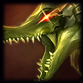 唯一被动——割裂:普通攻击造成100伤害(在攻击英雄时减少67%)并治疗自身10生命值。每次击杀、助攻和大型野怪击杀,都会使这个效果的伤害+3,治疗效果+1。