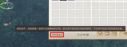 蓝盐贝相当于此前版本中原有的游戏货币,这意味着通过游戏原有的游戏设定,任务奖励、怪物掉落等环节都可以获得蓝盐贝,而蓝盐贝的消费途径也是十分广泛的,购买药水、装备修理、购买房屋/船只图纸、房屋税金、重置天赋等,应用范围的广度与采用双币制前大致相同。