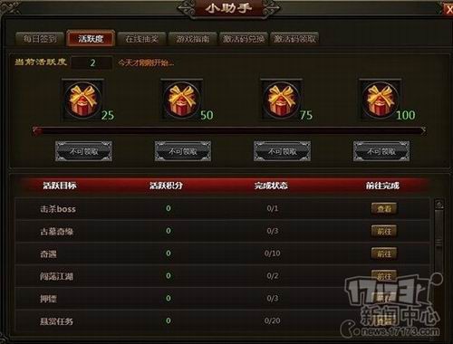 在线礼包还有两个很常见的分支---活跃度礼包和等级礼包。活跃度礼包是将在线礼包中的时间要求换成了活跃度要求,给出一些日常性的游戏行为作为目标,完成这些目标会获得相应的活跃度,然后领取礼包奖励;等级礼包则在玩家创建完角色进入游戏后就会获得,当该角色达到某个特定级别时才能够打开,获得虚拟物品奖励和下个级别的等级礼包,一般为5或10的倍数。这两者既然是在线礼包的分支,所以只是在形式上有一点区别,我们就不多做赘言了。