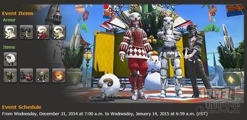 再过几天我们就要告别2014进入新的一年了,作为东方文化圈的日本也有着过十二生肖年的传统,而日本游戏公司史克威尔·艾尼克斯旗下的MMORPG《最终幻想14》官网日前也公布了即将上线的新年活动。和去年的马年活动类似,来自“神秘东方国家”的访客今年也拜访了艾欧泽亚大陆,并带来了特别的礼物和祝福。从1月2日-1月14日,玩家可以在海城罗莎·罗明萨找到他们,完成他们的任务将获得绵羊宠物、各种款式的绵羊头套(和马年头套类似)等礼物。