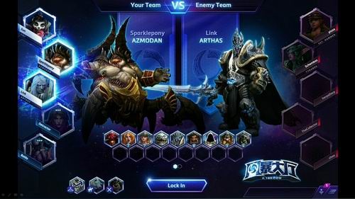 上面图是选秀模式的游戏载入画面,可以看到双方的阵容,这样一来就可以在游戏开始之前想好策略了,可以说是非常贴心的功能。