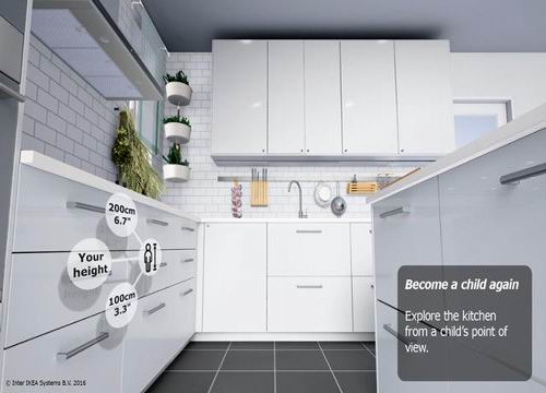 所以在虚拟空间时,我会小心翼翼挪动着,或揉着肚子继续导航。有一次,我强迫自己走到宜家厨房的边界,并不停暗示自己我可以做到。我的心在一瞬间停止了跳动,但放心,我还活着。