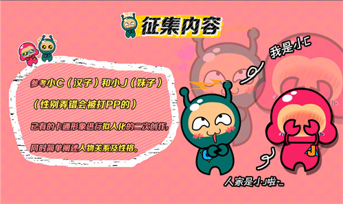 ChinaJoy吉祥萌物——小C和小J已经陪伴大家很多年了,两只萌萌哒的吉祥物早已深入人心!很多喜爱小C和小J的小伙伴们常常幻想两只萌物出现在现实生活中会是什么样子呢~现在两只萌物打算改变形象大变身,打开你们的脑洞举起你们的画笔,让我们看看大家心目中小C和小J拟人后是什么样子吧!