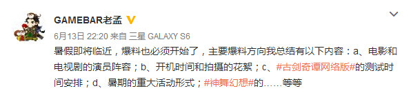 网元圣唐公司CEO孟宪明也在微博表示近期将爆料古剑电影和电视剧的演员阵容、开机时间和拍摄花絮。前年上映的《古剑奇谭》电视剧大获好评后,古剑二的电视剧也已经在开拍阶段。17173将会持续为大家带来最新动态爆料。