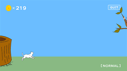 简单来说是一款十分简单有趣的小游戏。在游戏中玩家点击屏幕时,游戏中的喵喵就会轻轻跳起来躲避障碍物。长按屏幕时则会高高跃起。屏幕上不时会出现华丽的盗垒的棒球员,或者飘过的忍者……总之玩家们需要时刻关注屏幕上的情况。