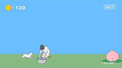 在看见关卡后玩家会发现一排并列放置的桃子。原本想着轻跳就可以通过的,但是这些桃子中突然会出现忍者和桃太郎本人。更加麻烦的是,当桃子中出现桃太郎或者拉拉队员时,只有蓄力跳才能越过关卡。当然,在这么短的时间内蓄力跳的蓄力时间根本不够。总体来说因为这些,玩家在这关里gameover的情况非常多。