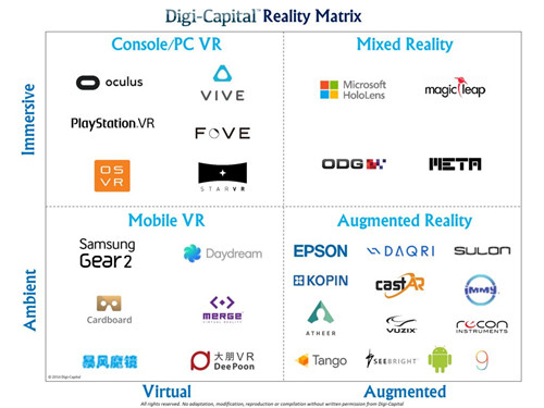 但现在这些技术比之前还要多样化,所以Digi-Capital的Reality Matrix(现实矩阵)使用了以下一些基本定义来区分: