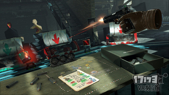 视频的开头部分跟《PlayStation VR世界》并没有什么太大的差别。一个大块头的恶男对着你吼叫,然后你将扮演游戏中的钻石大盗,通过使用Touch手柄在街道上与对手进行火拼射击。你的目标很简单,就是干掉阻挡你的任何人,成功偷取钻石。