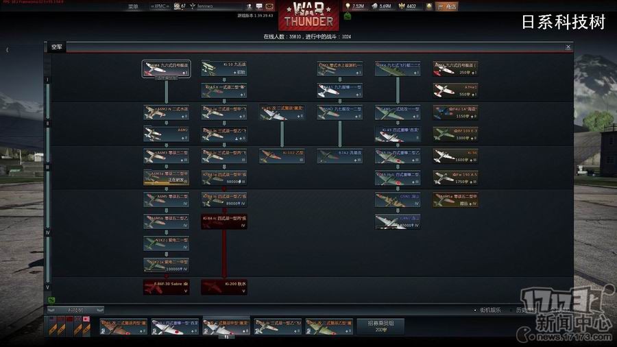 游戏中,美、英、苏、日、德五系飞机,总计包含数十种研发路线,数百种机型。