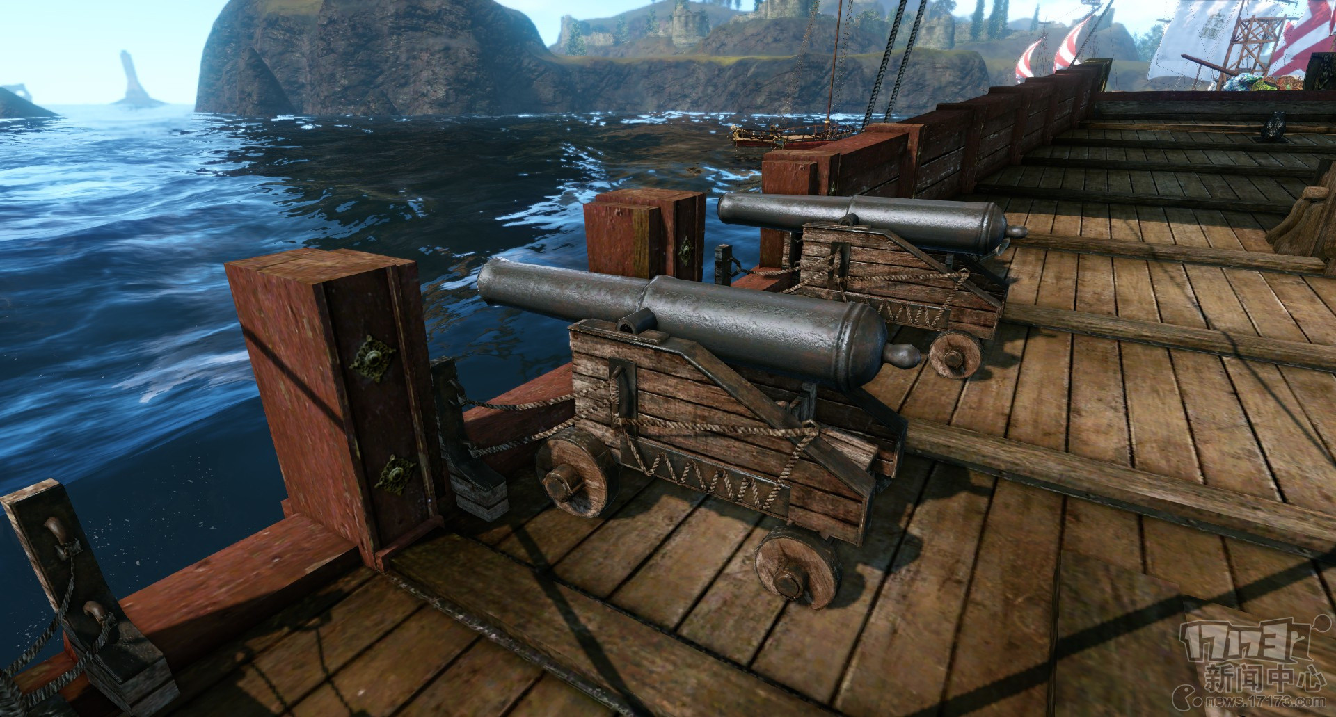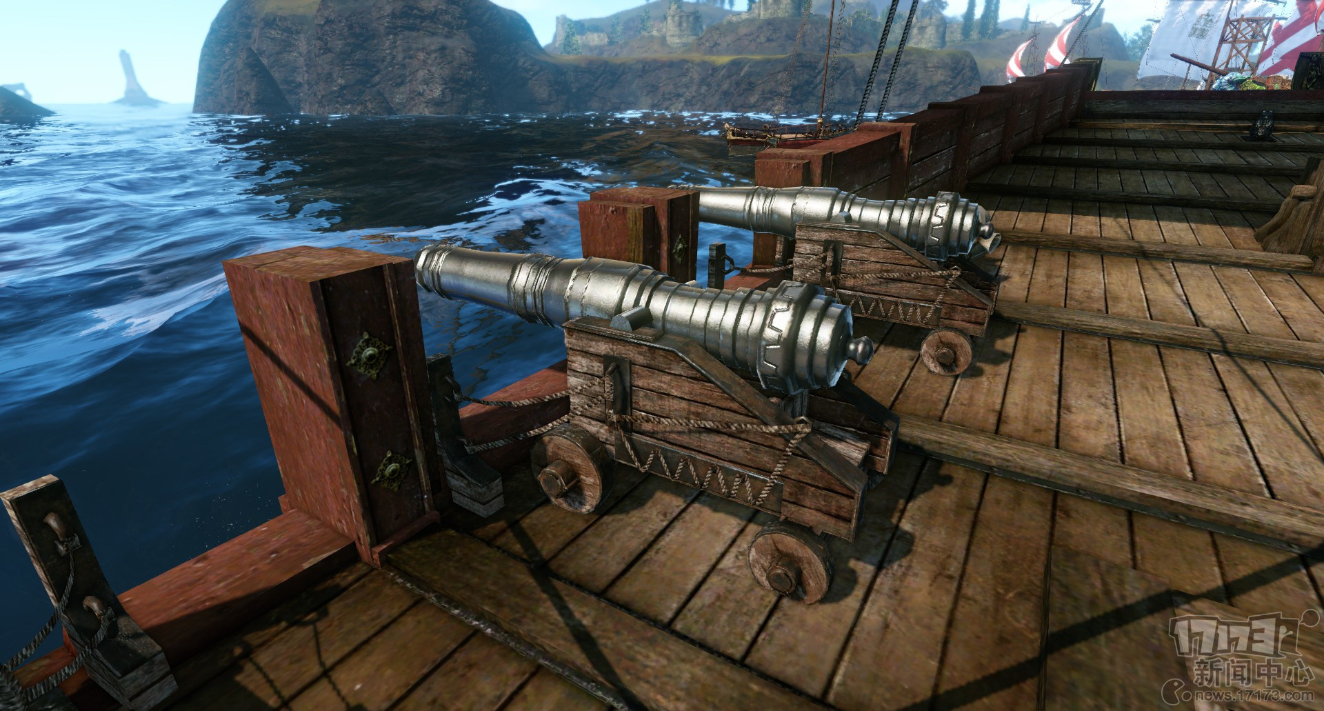 如果你的穿上有大炮这样的攻击装备,想自己开船同时开炮是不可能的。所以你必须有小伙伴跟你一起配合才能成为真正的战斗力。每门炮都得有个炮手,炮手自己也得备好炮弹。每门炮攻击时,也要自己瞄准好目标,同时开火以后炮弹也有符合现实规则的抛物线和射程。所以作战的时候,尤其是跟人打海战的时候,是一个相当讲究的团队配合。
