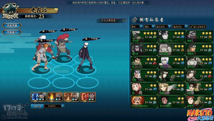 《火影忍者OL》即将迎来11月10日的“继承不限号”,自不删档以来游戏最引人注目的PVP模式就是竞技场。竞技场内所有忍者都是100级属性,装备以及勾玉根据一定百分比增加属性。多数玩家在体力使用完后选择打竞技场来寻找忍者的搭配,简单来讲,竞技场是一个“PK战斗试验室”。竞技场分为下忍竞技场、中忍竞技场以及上忍竞技场,玩家通过获胜场次可以提升忍者场次。今日,17173一周一游专题就为新手玩家带来打竞技场的小技巧,帮助大家提升胜率。