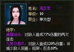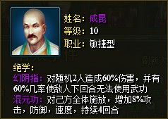 【职业系统】:职业决定了侠客的类型初定的职业类型有:单攻型:百兵之君,实亦若君般,给人以温文尔雅之感,杀气内敛,暗劲深藏。群攻型:进可攻,退可防;单锋利劈砍,厚背可卸力。敏捷型:兵中隐者,出其不意掩其不备,擅迷惑对手,克敌制胜。防御型:大智若愚,谋定而后动;以自身修炼为主,不假借