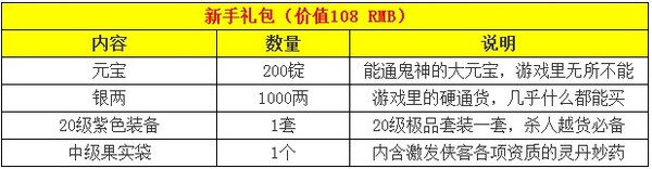 【活动奖励】:打开新手礼包即可获得以下道具(价值108RMB):