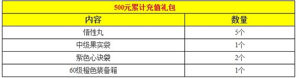 【活动说明】:活动期间累计充值达到一定金额即可获得一定奖励,奖励在游戏中领取礼包处领取,具体如下: