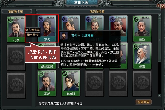 按钮,可消耗一定的元宝扩展卡箱的容量。