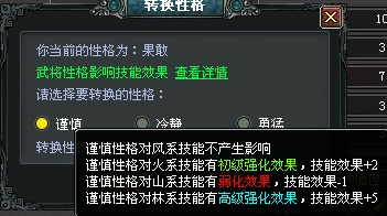 不同的性格影响的武将技能也不一样,点开查看详情可以看到具体的性格对武将技能的影响。