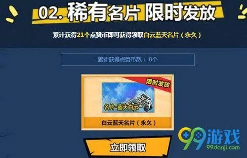 累计获得21个点赞币即可获得领取白云蓝天名片(永久)