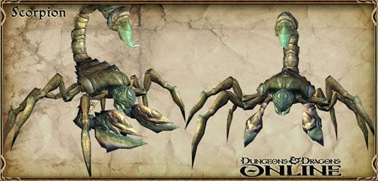 巨型毒蝎对粗心的冒险者来说是特别的挑战,它们非常巨大,体型由狗般大小到马一般大小不等,由于能够挖洞潜藏在地下,尽管缺乏智能,蝎子依然是极危险的敌人。而且正是没有智能,有些花招或魔法对它们就不管用。蝎子经常从阴暗的角落发动突袭,除非冒险者十分机警(这时游荡者的价值就体现出来了),否则可能直到被蝎尾刺中前都不能注意到。战斗开始后蝎子会设法挖洞钻入地下,然后从侧后方跳出袭击,要躲避或阻挡它的攻击十分困难。