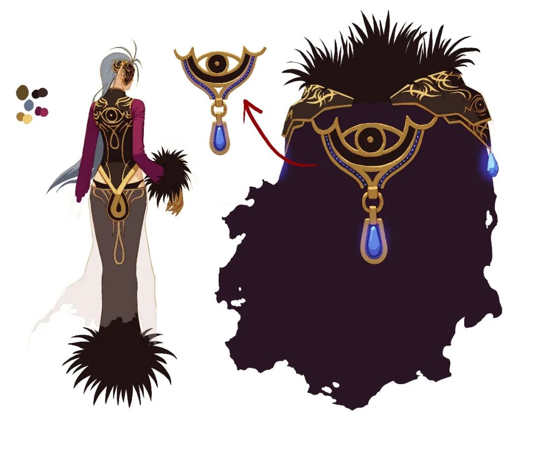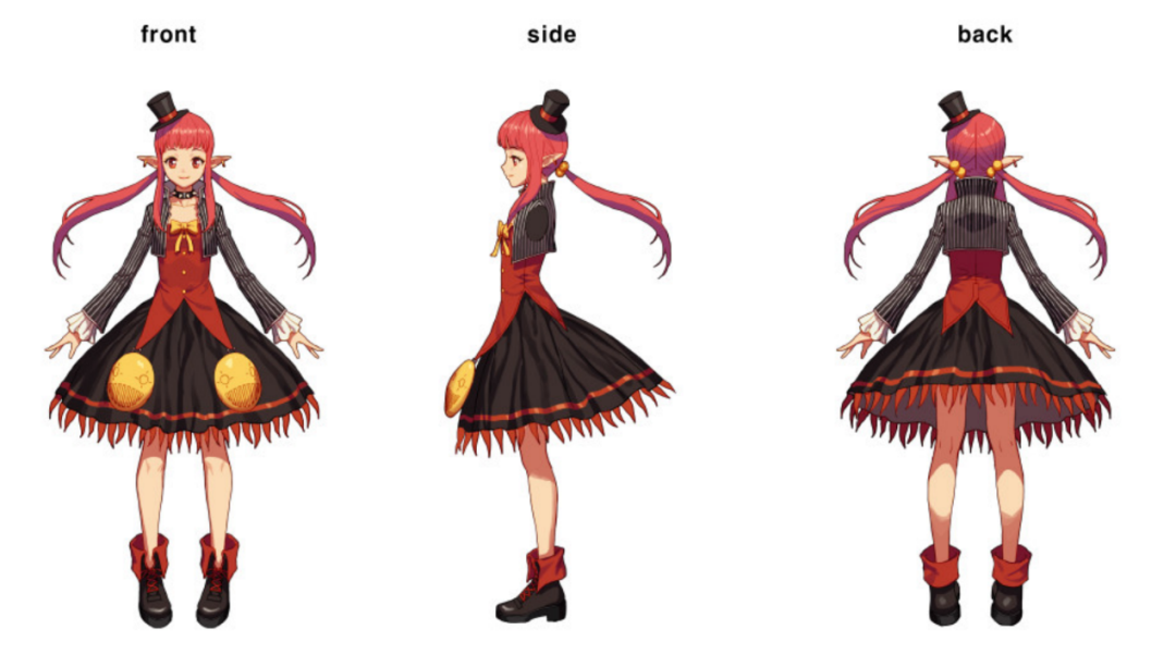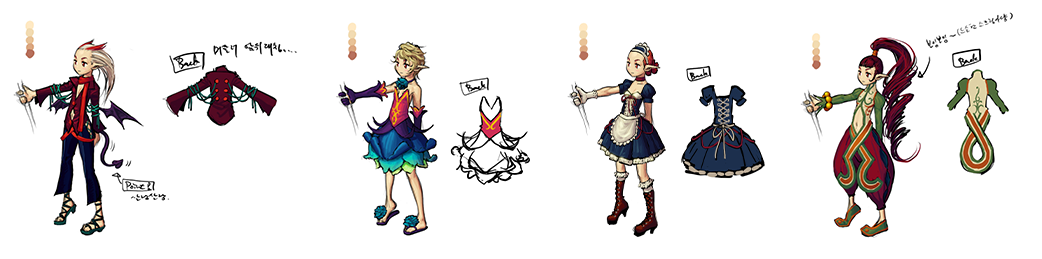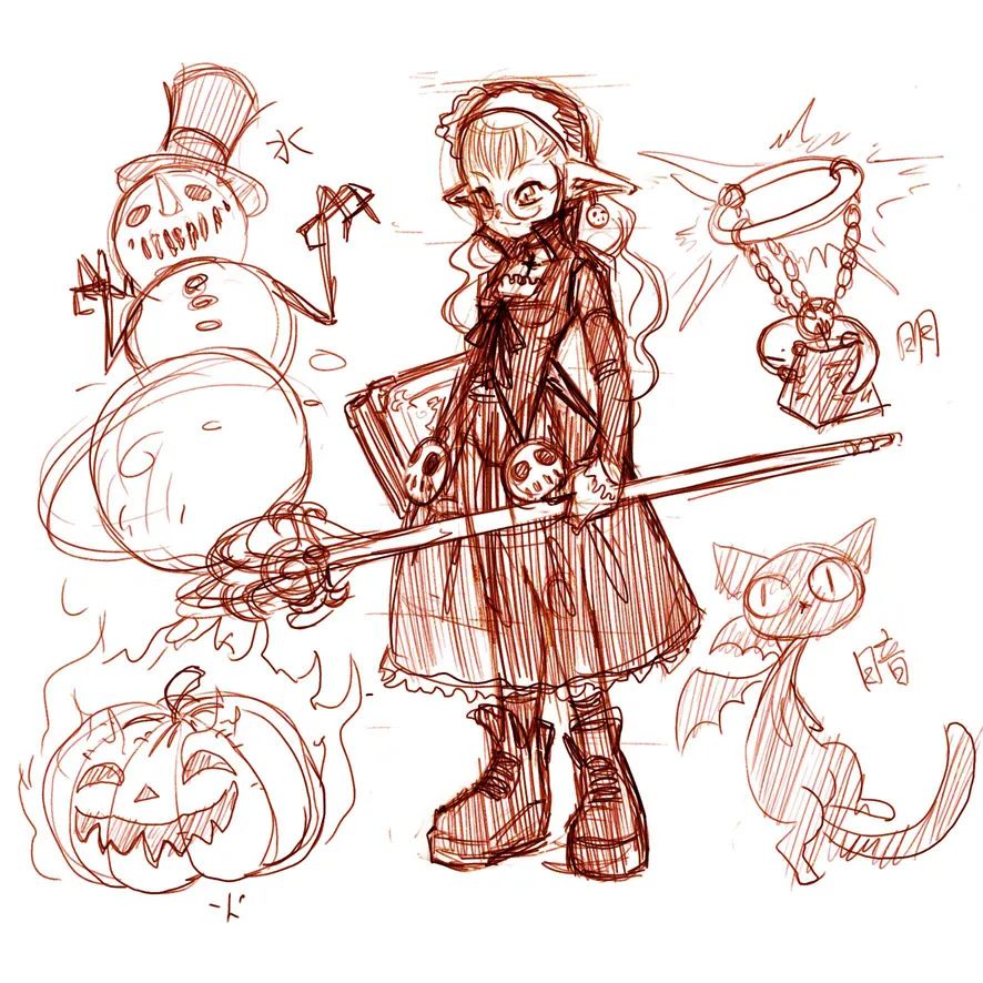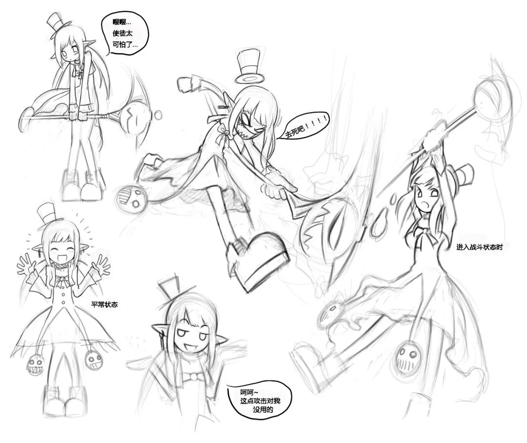 ▲早期的哥特风服装和法米利尔的草图,可看出现在的魔法师雏形。后来确定了设计的魔法师,就是大家现在熟知的可爱模样啦。