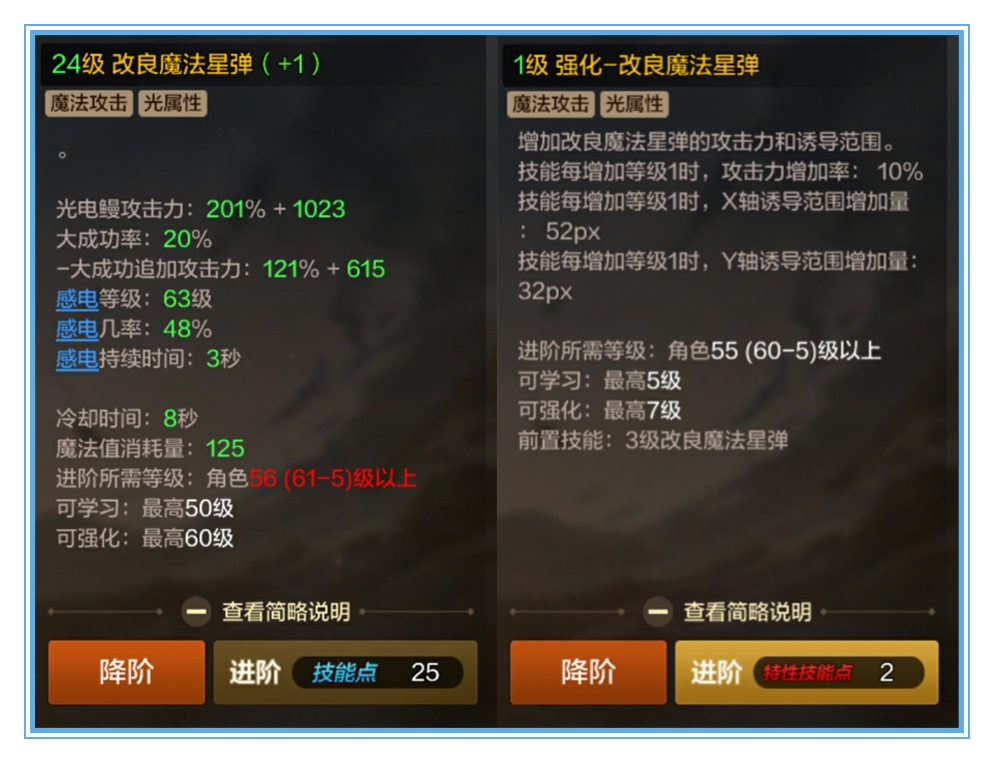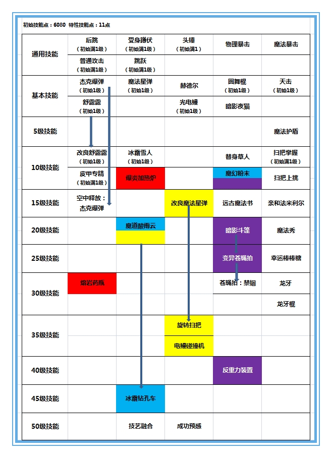 总结:在你选择加点普通技能的时候,同时选择加点对应特殊技能的加点,争取把技能伤害最大化。魔道学者满55级并完成冒险、勇士地图的所有3S评分共可拥有6080点技能点和11点特性技能点。大家要计算好自己的技能点,充分利用好每个技能点。