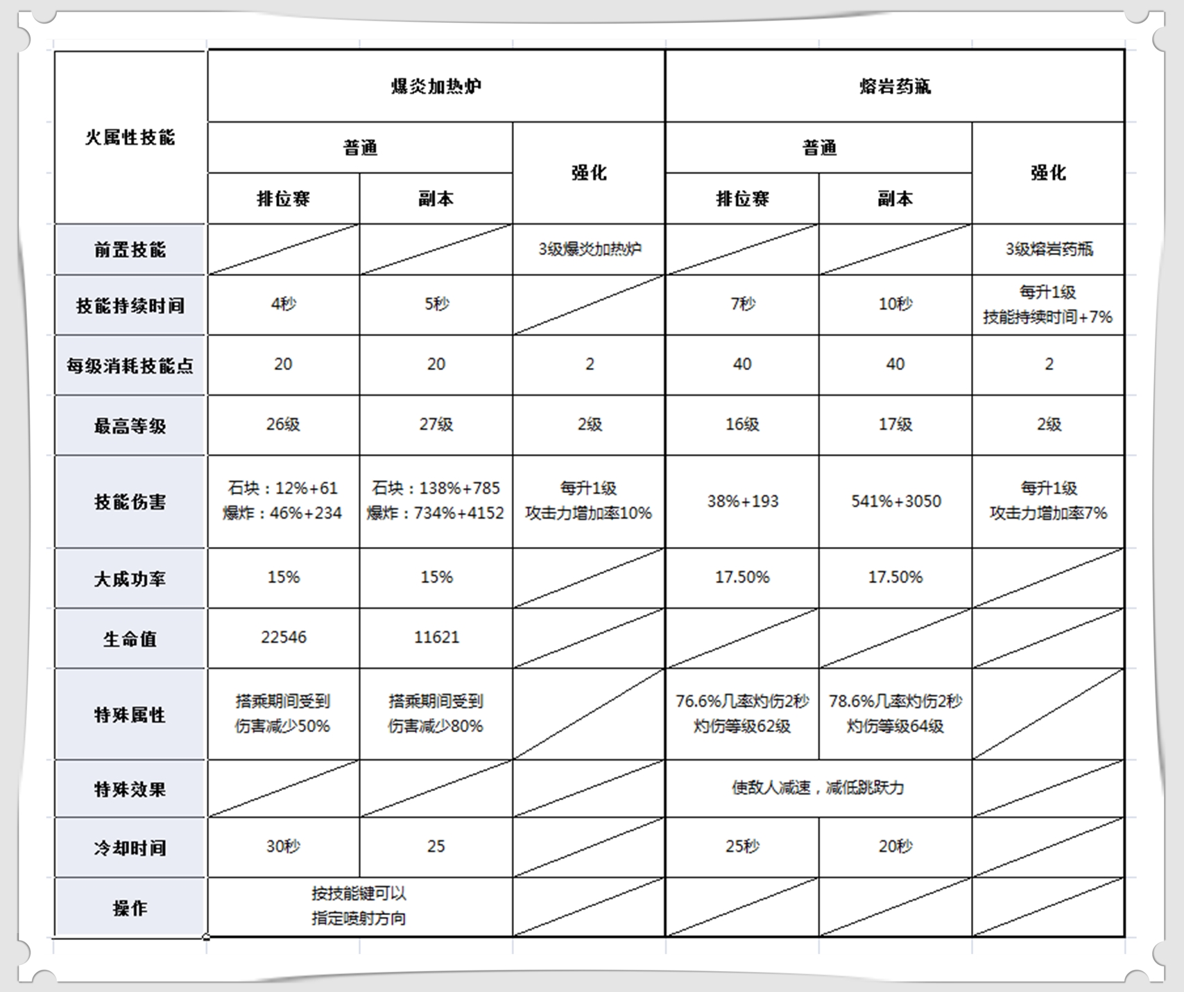 三、火属性技能