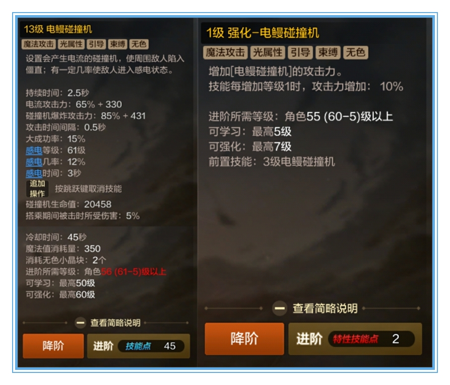 小编在这里对旋转扫把和电鳗碰撞机器做个推荐:旋转扫把和电鳗碰撞机是魔道学者副本和决斗都必修的技能,必须点满。前者高僵直度和高伤害(在副本和决斗场效果和伤害相当高);后者能对范围内的敌人进行控制,是敌人无法行动,同时提供可观的伤害。大家可以通过使用魔道学者来印证里云的话哦。