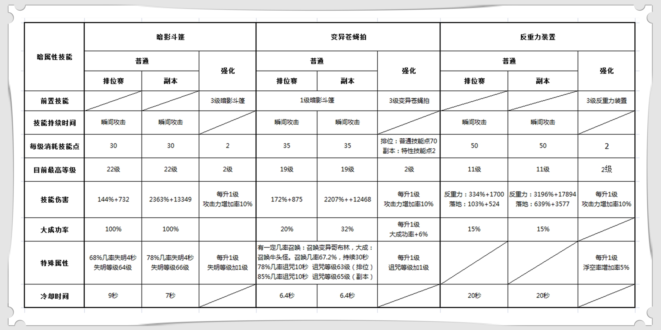 五、暗属性技能